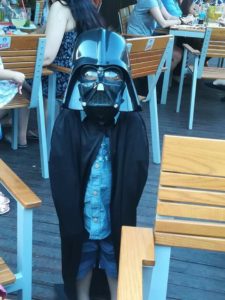 Inainte de Jackson Storm si Transformers, a fost era Star Wars. Avem peste 20 de figurine, Andrei ii stie pe toti, stie cine a omorat pe cine si ce vor de la viata asta. Avem periuta de dinti cu capul lui Darth Vader, carte cu povestea lui Darth Vader, costum cu Darth Vader, nu-stiu-cate sabii Laser, mai nou adidasi cu Darth Vader, tricouri.