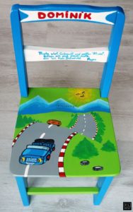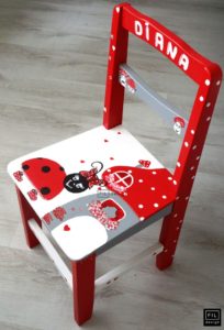 Fabiola spune ca “scaunelul cu dichis” a aparut dintr-o necesitate. “Proiectul <<Scaunelul cu dichis>> s-a nascut intr-o zi, acum aproape 2 ani, pe cand cautam un cadou personalizat pentru un prichindel. Mi-am dorit sa ofer un dar customizat, am rascolit google si toate cele si…nu prea mi-a placut nimic si-atunci am stiut: voi face eu scaunele unice pentru fiecare copilut in parte si scaunelul va fi asa cum este sarbatoritul – vesel, colorat, indragostit de masini sau baloane, boem, energic”.