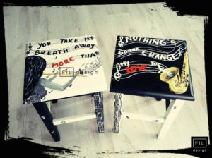 Scaunelele cu dichis nu sunt numai pentru copii, ci si pentru adulti. “Pentru cei mari am ales sa personalizez modelul taburet. Este foarte versatil si se integreaza usor in hol, living, bucatarie, birou sau ca noptiera in dormitor. Este cadoul ideal pentru cununii, aniversarea unor ani de relatie, o declaratie de dragoste, pentru o gramada de evenimente din viata. Si aici am fost surprinsa de bucuria si emotia cu care au fost primite, oferite si din nou solicitate”.
