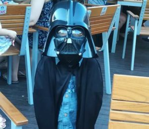 Da, Andrei este mare fan Star Wars si am profitat un pic de aceasta situatie. Ca sa accepte masca de la nebulizator pe fata, ne prefacem ca este Darth Vader si ca are nevoie de ea pentru a respira. Orice fan Star Wars stie ca fara masca Darth Vader nu poate supravietui