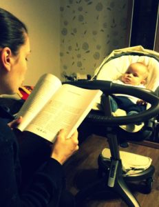 Acum am implementat o noua metoda, care a dat roade si la primul copil. Il tinem in carucior in casa. Avem un Stokke, iar Andrei, primul nascut, a fost ultra incantat sa stea in partea sport. Este inalt, are o pozitie buna, sta (si ) cu fata spre mine, vede bine in jur. Bebe nu sta inca in fundulet, asa ca il tinem la plan inclinat. Cand ii vine somnul, il urc in Stokke si il plimb prin casa pana adoarme. Are pozitia mult mai buna ca in āscoicaā, in sensul ca nu sta cu spatele arcuit, asa ca pot sa il las acolo o ora, o ora jumate.