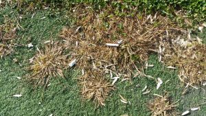 Accesorii de joaca stricate, coji de seminte si mucuri de tigara peste tot