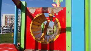 In mare, este chiar un parculet frumos, aerisit, dar din pacate lasat asa, de izbeliste.  Nu are decat 4 ani de cand a fost facut, dar deja s-a deteriorat, majoritatea accesoriilor de joaca fiind din lemn. Nu se zbate nimeni sa le repare, probabil asteapta alegerile sau ceva de genul.