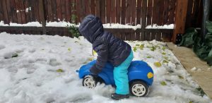 Deocamdata Edy nu si-a dat seama ca zapada e distractiva si nu il incanta prezenta ei pe jos 🙂 Am incercat sa il plimb cu caruciorul, ca sa stam totusi mai mult afara, dar de la frig si zgaltaiala l-a luat somnul in doua minute. Deci nici asta nu e schema 🙂