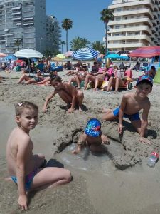 Dupa aceasta experienta ne-am rasfatat cu o baie in mare, ca doar nu era sa ratam plaja din Valencia care este URIASA! Atat de multi palmieri si o plaja atat de lata nu am vazut niciunde. Categoric zona vizitata de noi este destinata in special tinerilor, pentru ca atmosfera era de un party continuu si noi eram singurii cu copii mici de pe plaja! :)) Insa ne-am adaptat si am profitat de ultima zi de plaja pe Costa Blanca!