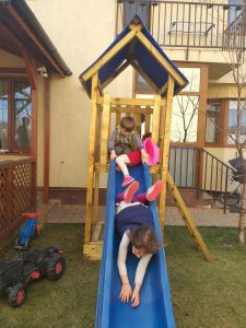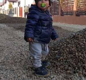 In casa, simt ca o iau razna. Bebe trage de toate lucrurile, baga mana in wc, umbla la vasele din masina de spalat, targe obiecte de pe masa, se urca pe mobila, vrea sa se uite la cantecele pe laptop, vrea sa se joace cu foarfeca, sa scoata pestele din bolul lui… Afara, bucurie si voie buna! Nu va inchipuiti ca daca nu e intre 4 pereti e cumintenia pamantului. Departe… Trage pisica de coada, le da cainilor pietre sa “manance”… Dar altfel trece timpul. Noi stam si intr-o zona de case, langa Bucuresti, si de cand e frumos afara strada e plina de copii.