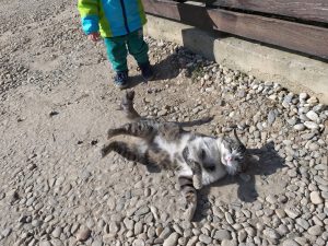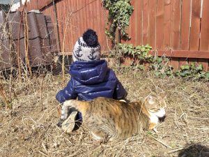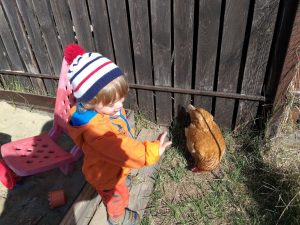 Fie vreme buna, fie vreme rea, noi iesim afara pe la 9:30-10, pentru ca in casa nu ne mai intelegem. Daca nu mergem in parculetul din zona, facem turul curtilor vecinilor care au diverse animale sau pasari. Pentru ca ne stiu ca venim in pelerinaj, avem acceptul lor de a intrat oricand si oricum.