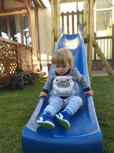 De curand mi-am facut curaj sa il las sa se catere singur si pe toboganele de prin parc, desi se mai impiedica cateodata pe scari. Am un tobogan, chipurile pentru copii mai mari, in curte si mereu il sustineam ca sa se dea pe el. Are niste scari mai greu de urcat si e destul de inalt. Ma gandeam ca el e prea mic pentru asa ceva si ca are neaparat nevoie de ajutor. Daaaar, saptamana trecuta, m-am luat cu treburi prin curte si nici nu mi-am dat seama cand curajosul meu a urcat singur scarile si s-a dat singur pe tobogan 🙂 Ideea e ca ar trebui sa am mai mare incredere in el. Daca ma vede langa el, nu mai vrea sa urce singur, vrea sa fie ajutat, in conditiile in care e capabil sa se descurce de unul singur 🙂