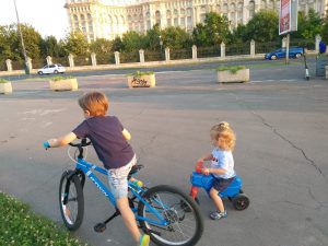Edy, care nu mai e bebelus de vreun an, dar pentru noi tot asa a ramas ( 🙂 ), imita tot ce vede la copii. Mai putin vorbitul. La doi ani are vreo doua cuvinte in vocabular si cateva onomatopee (cum face pisica, rata, vaca etc). In schimb, ce face omul, face si maimuta J Il imita pe Andrei in tot ce face, lucru care de multe ori da nastere la conflicte. Daca Andrei deseneaza, “deseneaza” si el. Asta inseamna ca ii “fura” creioanele si ii mazgaleste foaia. Daca Andrei vrea pe tableta, logic si el. Daca Andrei se joaca cu masinute, normal si Edy vrea cu masinute. ACELEASI masinute. Culmea e ca si invers e valabil 🙁 Daca Edy a gasit prin cutiile cu sute de jucarii ceva cu care Andrei nu s-a mai jucat de un an, fix atunci I se face dor de jucaria aia si i-o smulge lui Edy din mana.