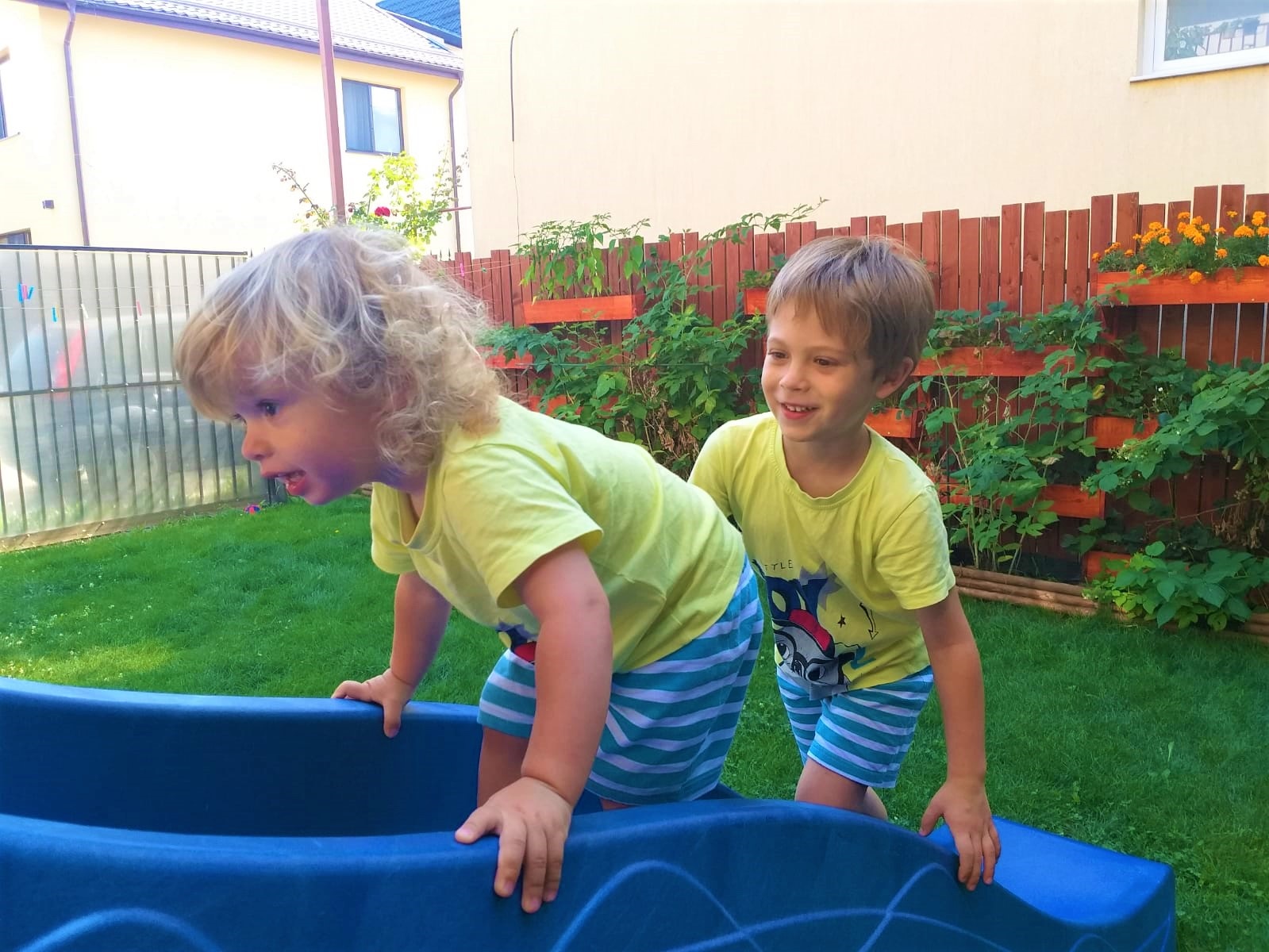 Si ca sa raspund concret la intrebare: exista si momente in care se mai joaca impreuna (la tobogan, de exemplu), dar cel mai adesea isi vede fiecare de treaba lui. Diferenta de varsta de patru ani e importanta la momentul asta. Poate pe viitor insa, cand mai creste si Edy, se vor juca mai mult.