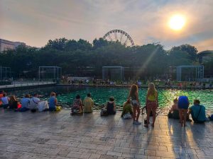 In partea a doua a zilei am mai descoperit cateva zone centrale mai animate, aflate de obicei la capetele podurilor peste Dunare, cu multe terase, ne-am dat in roata din Budapesta (Budapest Eye) si am stat cateva minute sa ne racorim picioarele intr-un fel de … piscina publica ce avea o apa de 30-40 cm adancimeJ O zona draguta de facut shopping si de baut bun la o terasa mi s-a parut cea din apropierea podului Elisabeta, in zona Pesta (destul de aproape si de roata uriasa).