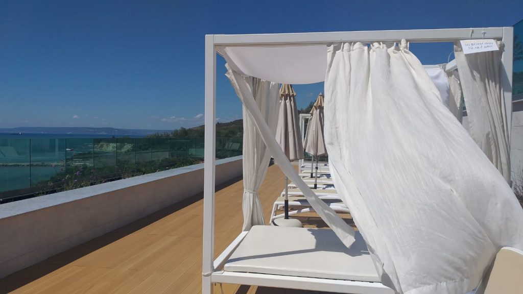In vremuri normale, fara pandemii si alte nenorociri, un loc de joaca si o petrecere sunt binevenite. Si aici exista un loc de joaca pentru cei mici, activitati pentru ei, cu animatori. Seara sunt petreceri la piscinele de sus sau la malul marii. Am auzit „Dragostea din tei” acolo cat n-am auzit-o in ultimii 10 ani in total 🙂