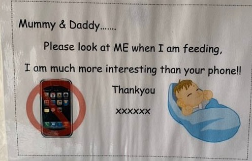 Zilele astea a circulat pe net un mesaj postat de o maternitate din Marea Britanie, care le recomanda proaspetelor mamici sa nu se uite la telefon in timp ce alapteaza, ci la bebelus.